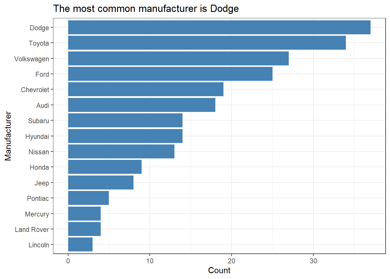 title = "The most common manufacturer is Dodge") |>